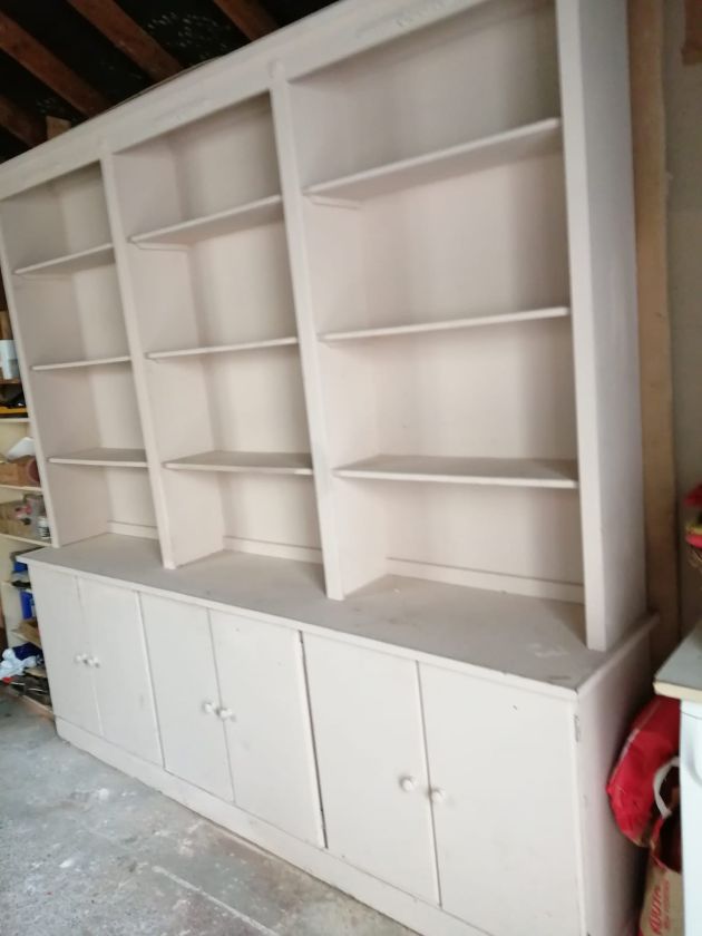 Top part measures 87 inch wide x 27 inches Height x 17 inches Depth. Lower part measures 85 inches wide x 36 inches height x 10 inches depth. |